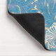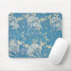 As folhas do azul de turquesa e as flores elaboradas da tulipa do azul e do branco de turquesa são o ponto de foco principal neste design. Atrás das folhas e das flores é um fundo bege pálido. Este impressão era mais provável um impressão do papel de parede ou impressão de matéria têxtil.