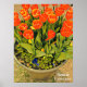 Poster de viagens de impressão de tulipas de laranja em Floriade, na Austrália de Camberra. Um festival de flores animado com tulipas e flores de primavera em um estilo moderno e colorido de viagem art impressão. Colorida e divertida na cidade de Canberra, Austrália.