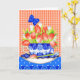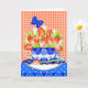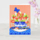 Tulipas Primavera desenhadas à mão em uma xícara para as comemorações da Páscoa em um bonito fundo de gingham. Com colher de ovo e etiqueta de chá! De ilustrações de Anni Arts desenhadas à mão e pintadas. Personalize seu dentro de saudação.