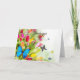 Tulipas coloridas brilhantes e cartões de agradecimentos de borboletas bonito. O dentro de espaço do vazio dá espaço para a sua nota.