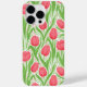 Tulipas em vermelho e verde, com um padrão sem costura
