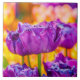 Violeta colorida, tulipas roxas, cor-de-rosa num leito de flores. Praticamente todas as cores do arco-íris estão presentes. Bela e positiva cena floral. Fotografia macro.