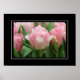 Poster mostrada com um impressão fotográfico de lindas tulipas cor-de-rosa. Mostrado no poster de valor, mas você pode atualizar e personalizar. Personalizar ou comprar conforme mostrado. Imagem do stock freepik.com