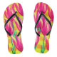 Tulipas desenhadas em chinelos de listras amarelas e laranja.