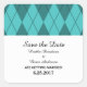 Argyle clássico e elegante Salve os adesivos de Data com um simples fundo de estilo de losango de turquesa. Fácil de personalizar com seus detalhes de casamento. Para obter mais opções de personalização, clique no botão Personalizar Ti.