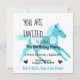 Personalize facilmente este convite de aniversário de pônei turquesa para qualquer idade de aniversário! Correspondência com papel de carta equestre, e presentes também estão disponíveis para a festa de aniversário de pônei da sua garota. Excelente para uma festa de carona, cavalo, tema equestre. Cavalo pequeno, mini cavalo ou pôneis Shetland.