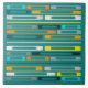 Um design de arte do estilo vintage dos anos 50 tem formas geométricas simples de retângulos largos. Verde colorido multicolorido e verde verde cor laranja, amarelo e cinza.