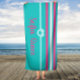 Turquesa E Listras De Script Rosa Correm Toalha De Banho Personalizada. Basta editar texto para personalizar!