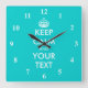 Turquesa Mantenha o relógio da parede Calmo com números. Crie a sua divertida calma e carregar na paródia. As cores de fundo também podem ser alteradas. Alguns dos melhores exemplos: Fique calmo e festeje. Fique calmo e me ame. Fique calmo e beba chá.