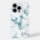 Apresenta um design brilhante turquesa marmoreado sobre fundo branco. Personalize com suas iniciais.