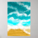 Bonito Ocean Art Poster. Azul, turquesa e ondas lacrimogêneas batendo contra uma costa arenosa.