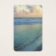 Ondas oceânicas pacíficas na costa. O sol que se põe destaca o céu e o mar com uma bela cor. Azul teal com toques de tons quentes de pôr do sol. Personalize todos os detalhes e o poema no contrário.