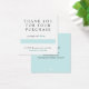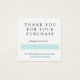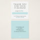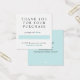 Obrigado pelo folheto de compra em um design minimalista fofo com um coração turquesa, onde a pessoa que preparou o pacote pode assinar o nome manualmente para um toque pessoal. Adicione suas informações de contato no outro lado azul pastel do obrigado que você tem para o seu cartão de pedido. Você também pode anotar um código de desconto para a próxima compra de seus clientes.