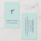 Cartão de visita único com um Hummingbird Brilhante, mingbird, mimetizado em um fundo turquesa leve. A fonte, o tamanho da fonte e a cor podem ser alterados.