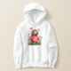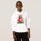 This is a kids or boys white hoodie that has a green turtle wearing its own hoodie. It's surrounded by flowers and butterflies.