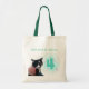A pintura do número quatro em verde com fitas de espiral cor-de-rosa, com uma foto do nosso tuxedo gato vestindo uma listrada rosa e branca, com espaço reservado para suas palavras, é impressa em bolsas de canvas personalizadas.