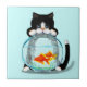 O gato de smoking olhou com saudade para o peixe. design de classe para fãs de gatinho e peixe.