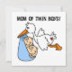 Adorável Mãe do design dos Twin Boys apresentando um carregando de cegonha um cobertor azul com gêmeos bebês e texto preto que diz "Mãe dos Twin Boys!". Mamãe dos Twin Boys mantém caixas, azulejos, ornamentos, notebooks, adesivos, canecas, mousépias, sacos de tote, chaveiros, ímãs e muito mais!