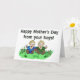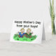 Um cartão único para aquela mãe sortuda de gêmeos! Feliz Dia de as mães de seus gêmeos por Kerra Lindsey apresenta dois meninos brancos na frente com flores para sua mãe.