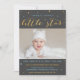 Primeiro convites de aniversário de uma estrela reluzente e reluzente para um garoto, com uma foto personalizada de estrelas de bebê e de ouro e estrelas azuis e azuis contra um fundo colorido de cinza. "Torneira, pequena estrela cintilante, um ano é o que você é!" está em ouro e azul, com os detalhes da primeira festa de aniversário abaixo. Vocês podem as cartas como anúncios de primeiro aniversário também.