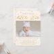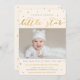 O Twinkle brilha os primeiros convites de aniversário de uma estrela para um menino ou menina, com uma foto personalizada de um bebê e cinzas e estrelas de ouro contra um simples fundo creme sofisticado. "Torneira, pequena estrela cintilante, um ano é o que você é!" está em ouro e cinza, com os primeiros detalhes de festa de aniversário abaixo. Vocês podem as cartas como anúncios de primeiro aniversário também.