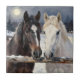 Tile with an illustration of two horses on a snowy winter ranch with a full moon in back of them standing behind an old rustic fence.