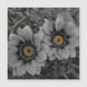 A pair of delicate daisies take centre stage in this striking selective‑colour photograph. The petals and surrounding foliage are rendered in smooth grayscale, creating a calm, monochrome backdrop. At the heart of each bloom, vivid yellow‑orange centres burst with warmth and detail, forming a dramatic contrast that immediately draws the eye. Fine water droplets rest on the petals and leaves, adding texture and a sense of freshness. The combination of soft tones and vibrant colour accents gives the artwork a modern, elegant feel that suits home décor, nature lovers, and contemporary art collections.