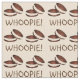 O tecido apresenta uma ilustração original de chocolate delicioso, tortas de torta recheadas com creme, com WHOPIE! escrito em fonte divertida. Perfeito para qualquer comemoração!