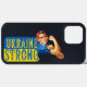 Honrando as mulheres da Ucrânia, esta design capa de telefone apresenta um texto "Ucrânia Forte" na bandeira ucraniana com a ilustração icônica Rosie the Riveter.