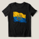 Ukrainian flag waving in the wind with Trident Coat of Arms.
