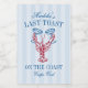 Celebre a noiva na praia com esses rótulos de vinho de festa de despedida de solteira com tema costeiro. "Último brinde na costa" aparece em letras azuis de verão, com uma ilustração de uma lagosta vermelha brindando com duas taças de champanhe. Personalize com o nome da noiva e o destino.
