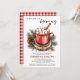 Um Bebê está a fazer um simples convite ao Chá de fraldas - apresentando chocolate quente com aquarela, com marshmallow, sentado sobre madeira cercada por pinus, pinecones e bagas naturais. A parte de trás do convite é a xadrez vermelha e branca moderna. Nosso modelo Chá de fraldas de torna tão simples para você personalizar seu Convite especial para Chás de fraldas.
