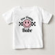 Um bebê feliz rosa feliz sorriso menino primeiro aniversário combinando camiseta de bebê.