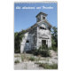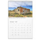 Um calendário de uma página com casas velhas, abandonadas, abandonadas, abandonadas, abandonadas e esquecidas, carros, caminhões e igrejas.