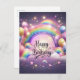 Celebre cada momento colorido com o nosso "Cartão de Celebração de Aniversário Vibrante", a maneira perfeita de enviar votos alegres de aniversário. Com um deslumbrante fundo de arco-íris e um céu cheio de balões alegres, este cartão captura a essência de uma celebração festiva. A frente do cartão é adornada com a saudação alegre, "Feliz Aniversário", escrita em uma fonte lúdica e atraente. Ideal para quem ama cores brilhantes e ocasiões alegres, este cartão é uma ótima escolha para amigos, familiares ou colegas no seu dia especial.