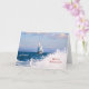 Envie cartões de aniversários com este belo cartão. Um iate veleja com ondas de salto. Um cartão de aniversário divertido para um marinheiro. Uma carta para todos que amam barcos e oceanos. A mensagem dentro pode ser alterada para suas necessidades.