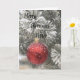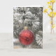 Um galho de árvore de Natal com uma bolha vermelha coberta de neve