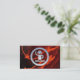 Um cartão de negócios original do DJ com um símbolo do abstrato 3d DJ em um fundo vermelho do grunge do splaater.