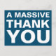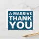 Um cartão postal de agradecimento enorme com fontes grandes modernas em um fundo de cor brilhante.