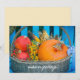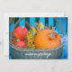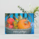 Um cartão postal encantador, com tema de outono, apresenta uma fotografia encantadora que captura a essência da estação. A imagem mostra abóboras vibrantes, uma cesta rústica cheia de milho e bagas coloridas, todas colocadas contra um pano de fundo azul picturesco. Perfeito para enviar saudações calorosas aos seus entes queridos, este cartão postal encarna a atmosfera acolhedora e convidativa do campo do outono. Por favor, personalize-o, adicionando sua própria mensagem.
