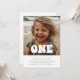 Um primeiro convite de aniversário com sua própria foto e a palavra 'um' em uma fonte de estilo ranzinza sobre o topo. Perfeito para a sua Festa de aniversário com tema retrô!