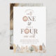 Um modelo de convite de aniversário conjunto para o 1º e 4º aniversário com rostos de leão em aquarela e folhas de safari em tons neutros ao longo da parte inferior. Você pode adicionar sua própria foto no verso. Perfeito para a sua festa de aniversário com tema safari 'Wild One' e 'Four Ever Wild'!