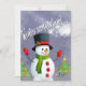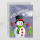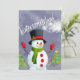 Esta é uma ilustração digital com um bonitinho bonitão querendo convidá-lo para um maravilhoso janto de Natal. Há neve com presentes e árvores de Natal.