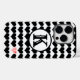 Um padrão de tendências divertido com múltiplos corações negros com um solteiro de coração rosa. Personalize com a sua versão inicial. Projetado por Robin D. Cox.