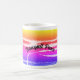 Um impressão abstrato bonitinho, com cores amarela, laranja, vermelha, roxa e azul numa caneca branca clássica, com texto a ler "Tranquil Peace"