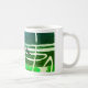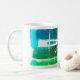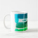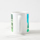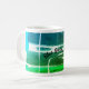 Um impressão abstrato bonito, com cores azuis, verdes e negras numa caneca branca clássica, com texto a ler "Blue Green Bliss"