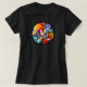 Uma ilustração circular moderna de abstrato com tema tropical e formas geométricas de cor vibrante.