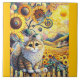 Uma cena balística mostra um gato sentado sobre uma cerca, cercado por girassóis vibrantes e libélulas coloridas. O fundo inclui colinas rolantes, um sol brilhante e uma disposição divertida de padrões giratórios. Digital Art Photoshop CS