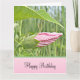 Um bonito botão de flor rosa traz desejos para um "Parabéns". Dentro o verso tem desejos de felicidade e amor. O cartão perfeito para aquela pessoa especial.