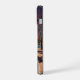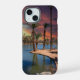 um dramático pôr do sol no Parque Encanto com um lago cercado por palmeiras verdes e peludas na Arizona de Phoenix.